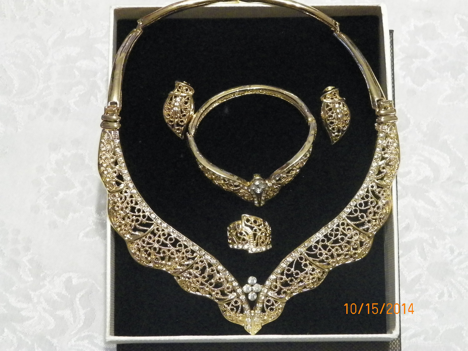 Beautiful gold plated set; necklace, earrings, bracelet and ring.