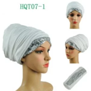 White Silk Turban with Sequin Design